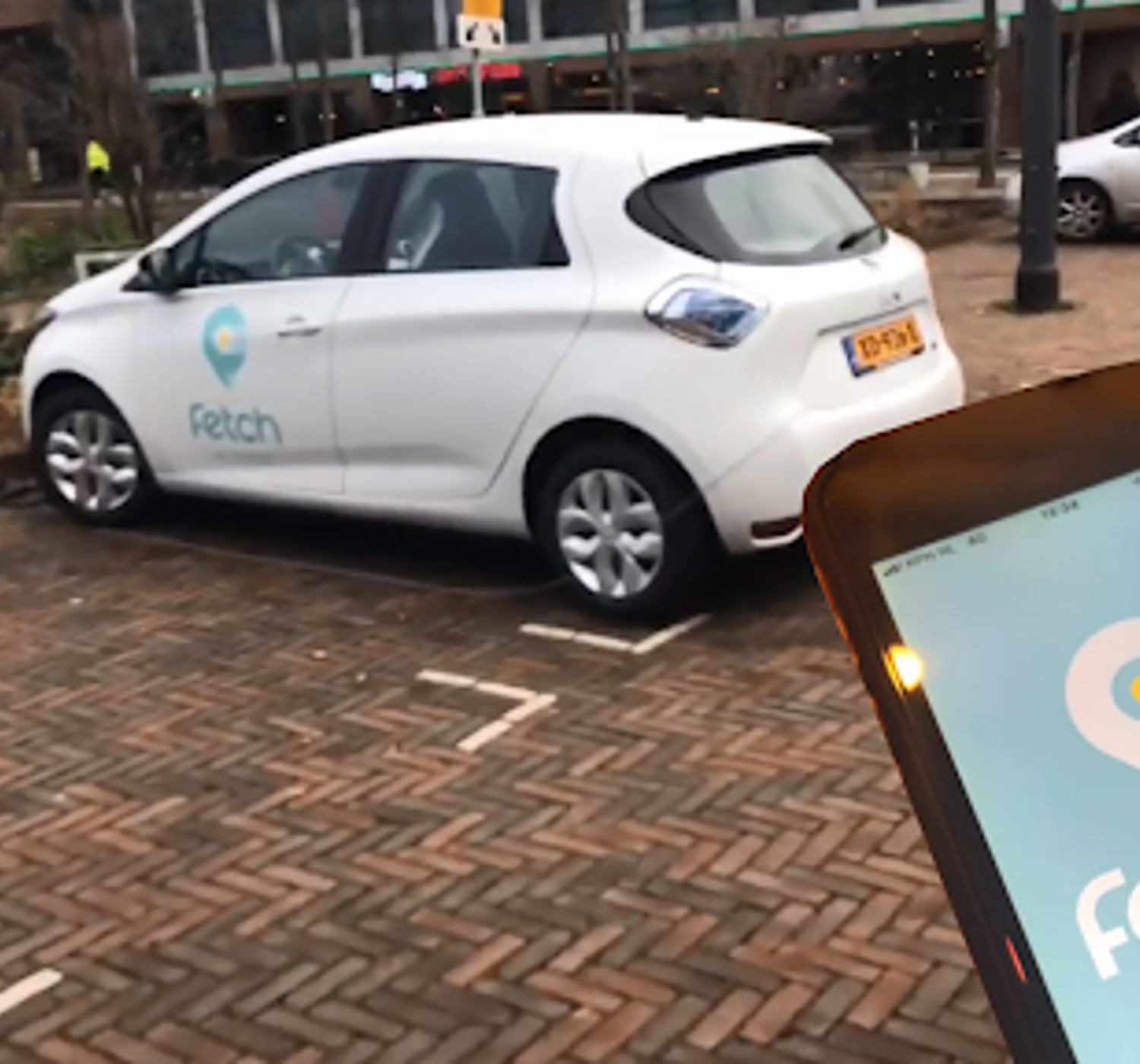 The shared cars are 'free-floating' where the cars do not have a fixed parking space, but can be picked up and left anywhere within the parking zone in Amsterdam. Everything related to searching, booking, unlocking and starting the car, deregistering and paying is done via the Fetch app.